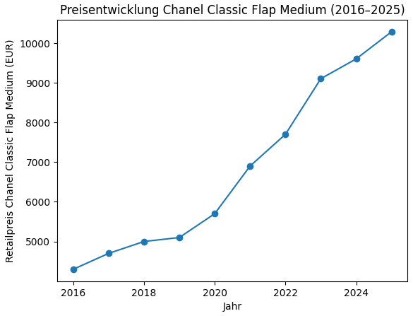 Preisentwicklung der Chanel Classic Flap 2016 – 2025